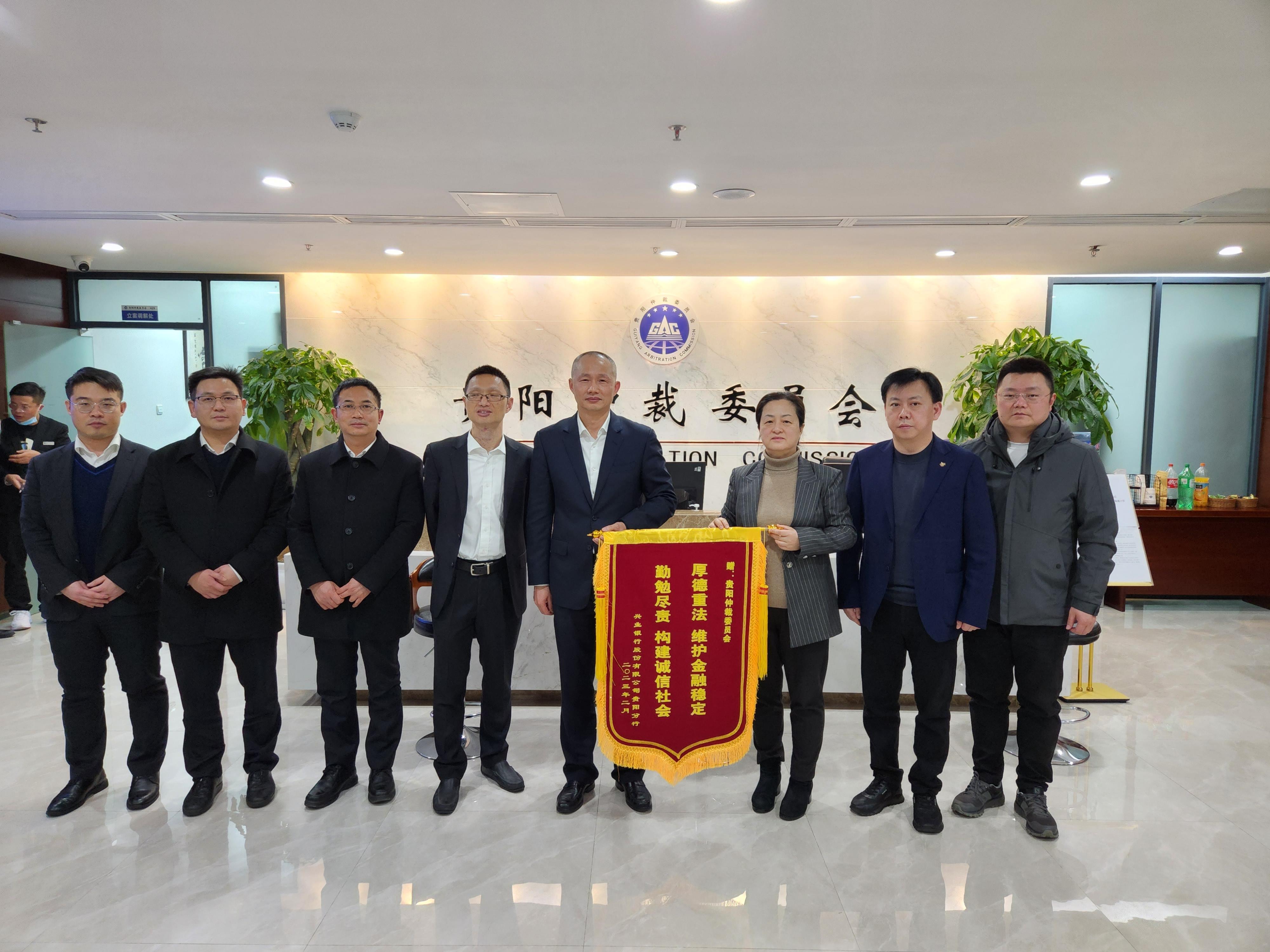 2023年2月23日,由于貴陽仲裁委員會(huì)在興業(yè)銀行貴陽分行設(shè)立信用卡仲裁調(diào)解中心以來協(xié)助后者高效解決大量糾紛,興業(yè)銀行貴陽分行向貴陽仲裁委員會(huì)贈(zèng)送錦旗表示感謝。