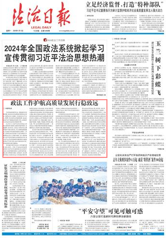 2024年1月,習(xí)近平總書記對政法工作作出重要指示強(qiáng)調(diào),堅(jiān)持黨的絕對領(lǐng)導(dǎo),忠誠履職、擔(dān)當(dāng)作為,以政法工作現(xiàn)代化支撐和服務(wù)中國式現(xiàn)代化,為全面推進(jìn)強(qiáng)國建設(shè)、民族復(fù)興偉業(yè)提供堅(jiān)強(qiáng)安全保障。一年來,各級政法機(jī)關(guān)堅(jiān)持以習(xí)近平新時(shí)代中國特色社會主義思想為指導(dǎo),深入貫徹落實(shí)習(xí)近平法治思想和總體國家安全觀,把習(xí)近平總書記的重要指示精神轉(zhuǎn)化為建設(shè)更高水平平安中國、法治中國的實(shí)際行動,護(hù)航高質(zhì)量發(fā)展行穩(wěn)致遠(yuǎn)。
