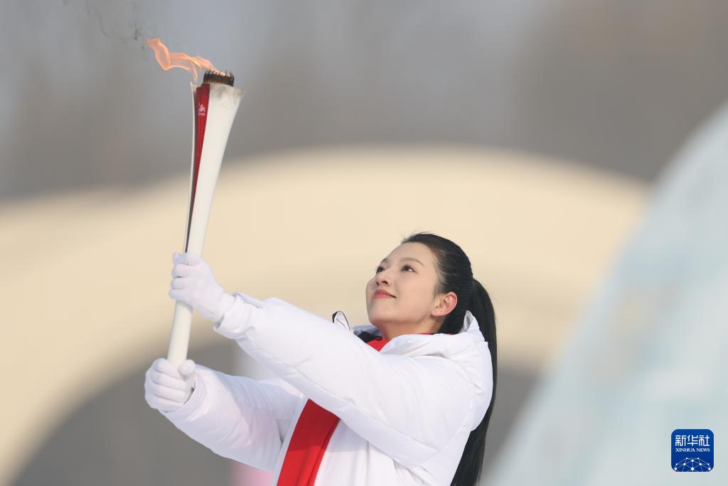 11時14分許,火炬點燃,火光躍動。本屆亞冬會火炬主題為“澎湃”,高約735毫米。整體造型似綻放的丁香花,采用中國紅、丁香紫、冰雪白等色彩,兼具中國古典與現(xiàn)代藝術(shù)相結(jié)合的美感。
