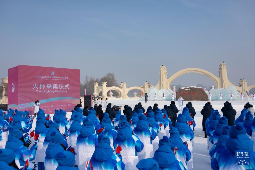 這是1月20日拍攝的太陽島風景區(qū)舉行的2025年第九屆亞洲冬季運動會火種采集儀式現(xiàn)場。新華社記者 王松 攝