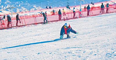 走進(jìn)新疆昌吉回族自治州阜康市天山天池國際滑雪場的雪具大廳,懸掛的紅燈籠增添濃濃年味。雪具租賃處排起了長隊(duì),雪道上已經(jīng)有不少人飛馳而下?!懊磕甏汗?jié)假期都是我們的‘旺季’,很多年輕人選擇在滑雪場里過年?!被﹫龉ぷ魅藛T蘇暢說。