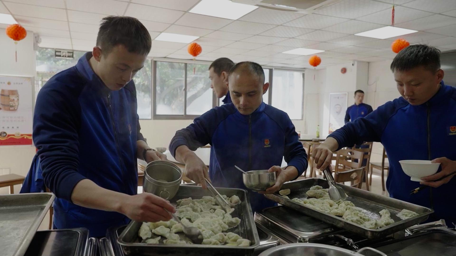 而在隊(duì)里過年,同樣也需要陳旭操持。休息時(shí),他安排大家一起包餃子。大家圍著一圈等著餃子出爐,剛一出鍋,就有人迫不及待地先要“嘗嘗味”。有的消防員還秀出自己的廚藝,整個(gè)食堂里歡聲笑語不斷,為緊張的備戰(zhàn)生活增添了幾分輕松和歡樂。