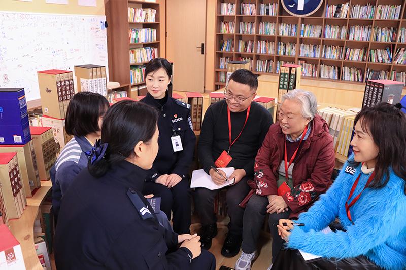 圖為小梅(左三)接受本報記者采訪。
