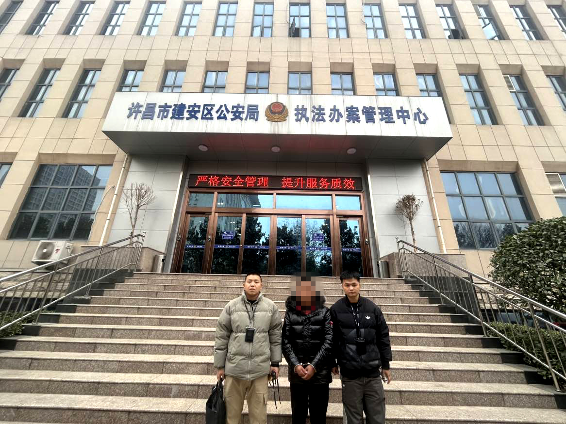 圖為貴陽鐵路公安民警趕至許昌將犯罪嫌疑人帶回。(貴陽鐵路公安處供圖)