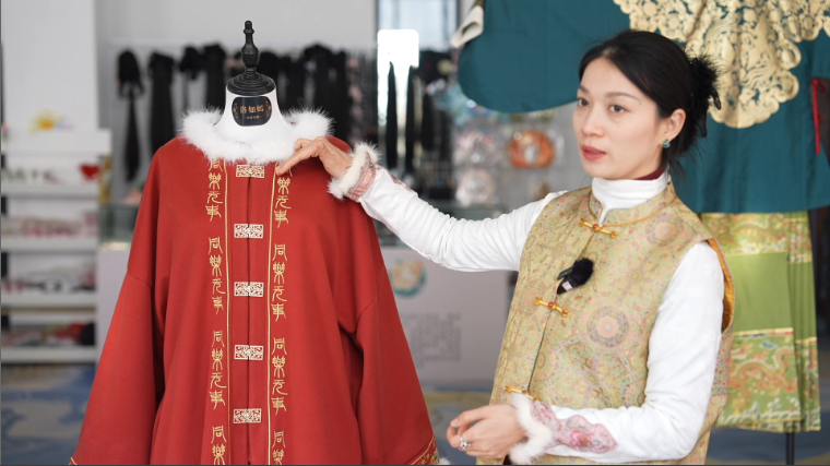 曹縣洛如嫣原創(chuàng)漢服負責人展示蛇年新款拜年服