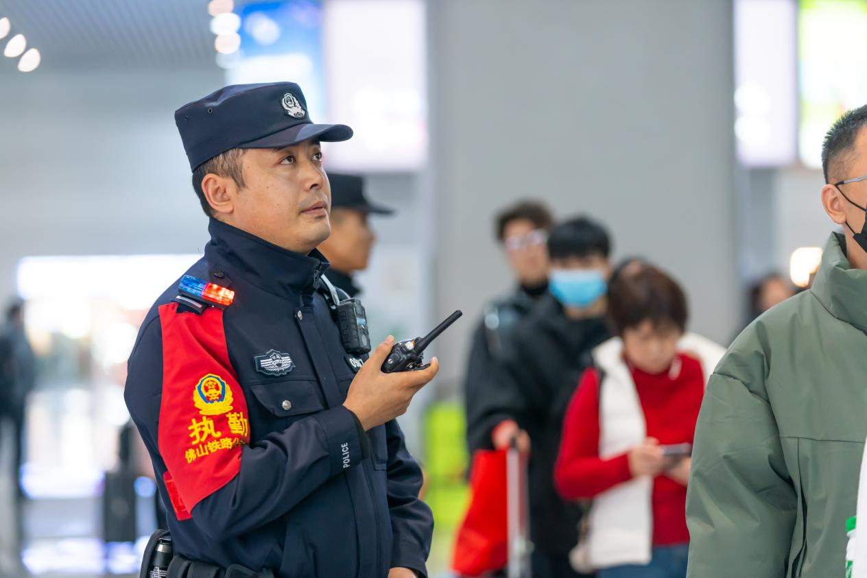 教導(dǎo)員鐘紹向記者介紹,面對(duì)一年一度的春運(yùn)“大考”,佛山西站派出所的民警與南海區(qū)近300名志愿者攜手合作,采用全天候值班的方式,盡全力維護(hù)站內(nèi)秩序及安全。同時(shí),“民警+志愿者”的聯(lián)動(dòng)機(jī)制在春運(yùn)期間發(fā)揮著十分重要的作用,共同守護(hù)好旅客的回家之路。