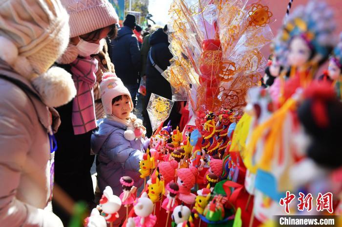 2月9日,一名小朋友在糖畫、面塑攤位前駐足。當(dāng)日,位于青島市市北區(qū)的2025年青島蘿卜·元宵·糖球會(huì)海云庵會(huì)場(chǎng)開街,豐富多彩的迎接元宵節(jié)活動(dòng)吸引大量民眾參與。蘿卜·元宵·糖球會(huì)擁有百年歷史,是當(dāng)?shù)刂匾拿袼谆顒?dòng)之一。王海濱 攝