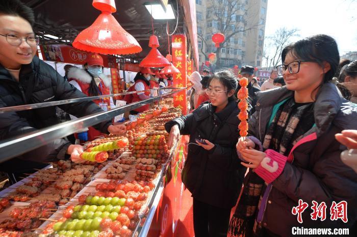 2月9日,民眾購(gòu)買糖球。當(dāng)日,位于青島市市北區(qū)的2025年青島蘿卜·元宵·糖球會(huì)海云庵會(huì)場(chǎng)開街,豐富多彩的迎接元宵節(jié)活動(dòng)吸引大量民眾參與。蘿卜·元宵·糖球會(huì)擁有百年歷史,是當(dāng)?shù)刂匾拿袼谆顒?dòng)之一。王海濱 攝