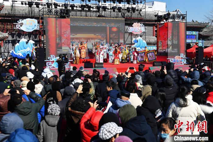 2月9日,京劇表演吸引民眾欣賞。當(dāng)日,位于青島市市北區(qū)的2025年青島蘿卜·元宵·糖球會(huì)海云庵會(huì)場(chǎng)開街,豐富多彩的迎接元宵節(jié)活動(dòng)吸引大量民眾參與。蘿卜·元宵·糖球會(huì)擁有百年歷史,是當(dāng)?shù)刂匾拿袼谆顒?dòng)之一。王海濱 攝