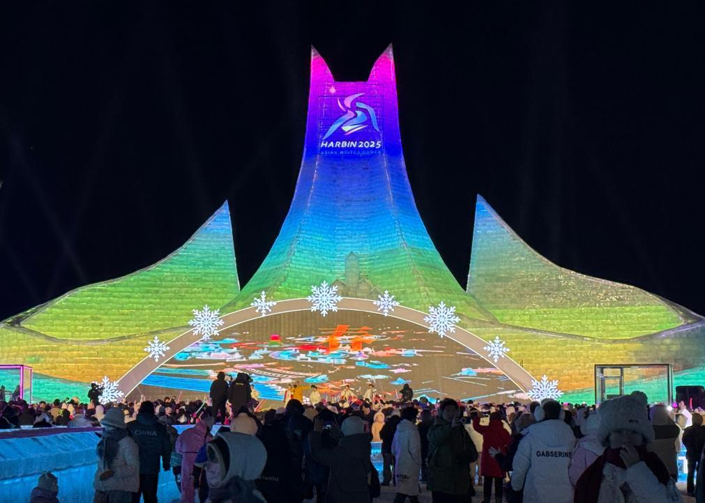 哈爾濱冰雪大世界夢想大舞臺上演元宵大聯(lián)歡。新華社記者 楊思琪 攝