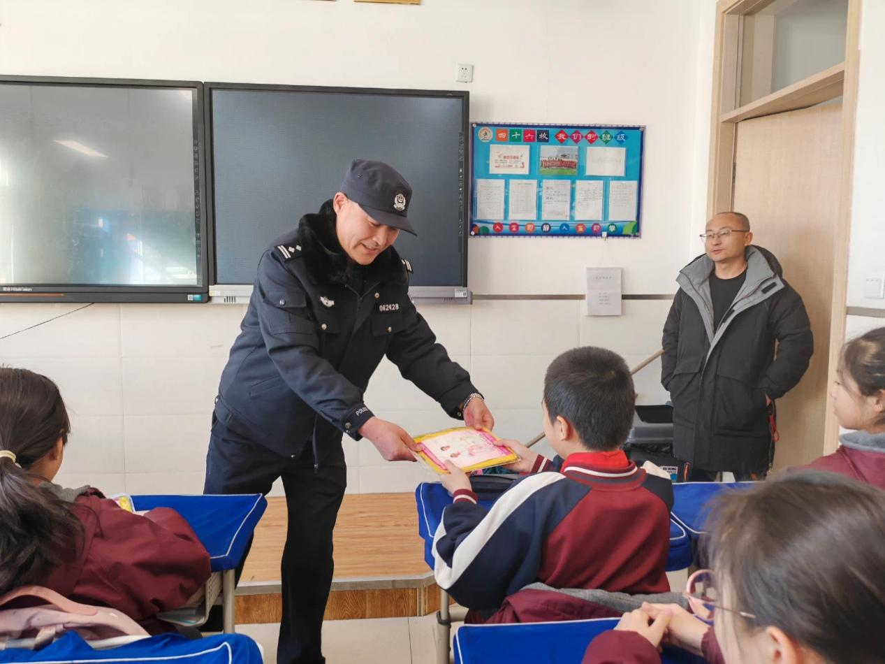 圖為白殿華同志在線路周邊學(xué)校開展愛路護(hù)路宣傳。(太原鐵路公安局大同公安處大同站派出所供圖)