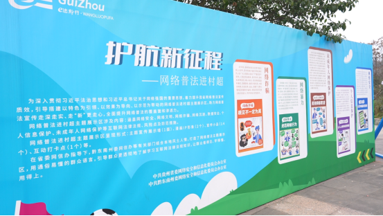 “村超普法點”是一個集普法宣傳、互動體驗、教育展覽、法律服務(wù)等多功能于一體的綜合性普法平臺。在“村超”比賽現(xiàn)場及周邊區(qū)域,設(shè)置了展示網(wǎng)絡(luò)安全、網(wǎng)絡(luò)詐騙等內(nèi)容的展板,并組織普法志愿者向觀眾發(fā)放普法宣傳資料,講解法律知識。