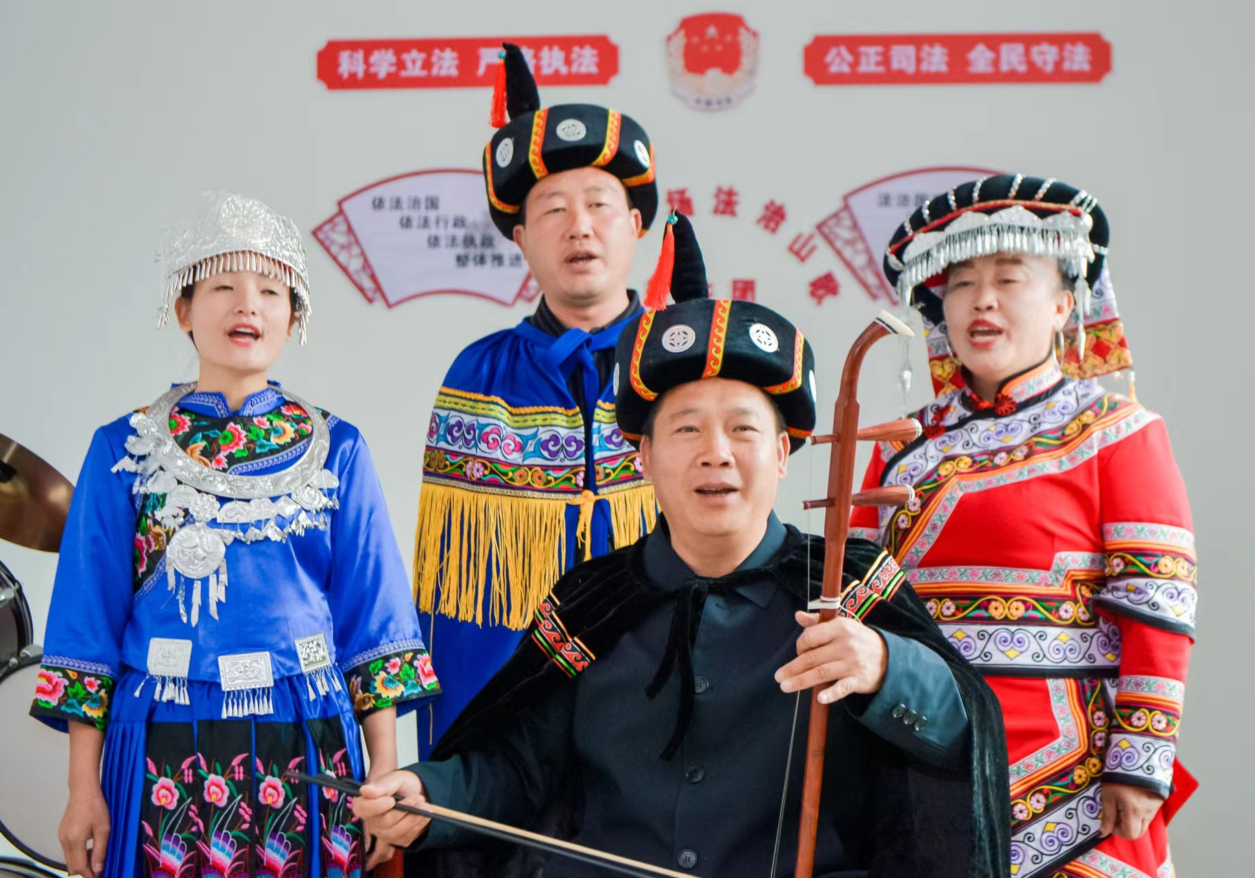 去年盛夏的榕江“村超”賽場(chǎng),侗族琵琶歌《反詐勸世歌》引發(fā)萬(wàn)人合唱。當(dāng)?shù)厮痉ň盅?qǐng)國(guó)家級(jí)非遺傳承人吳家興,將38部法律改編成72首侗族大歌,通過(guò)“賽前普法微課堂+賽中法治啦啦隊(duì)”模式,讓20萬(wàn)游客在“最炫民族風(fēng)”中完成法治教育。