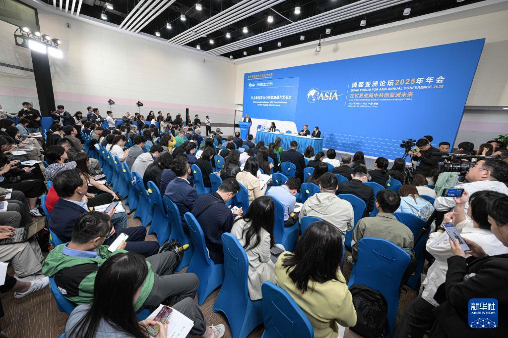 3月25日在海南博鰲拍攝的博鰲亞洲論壇2025年年會新聞發(fā)布會暨旗艦報告發(fā)布會現(xiàn)場。