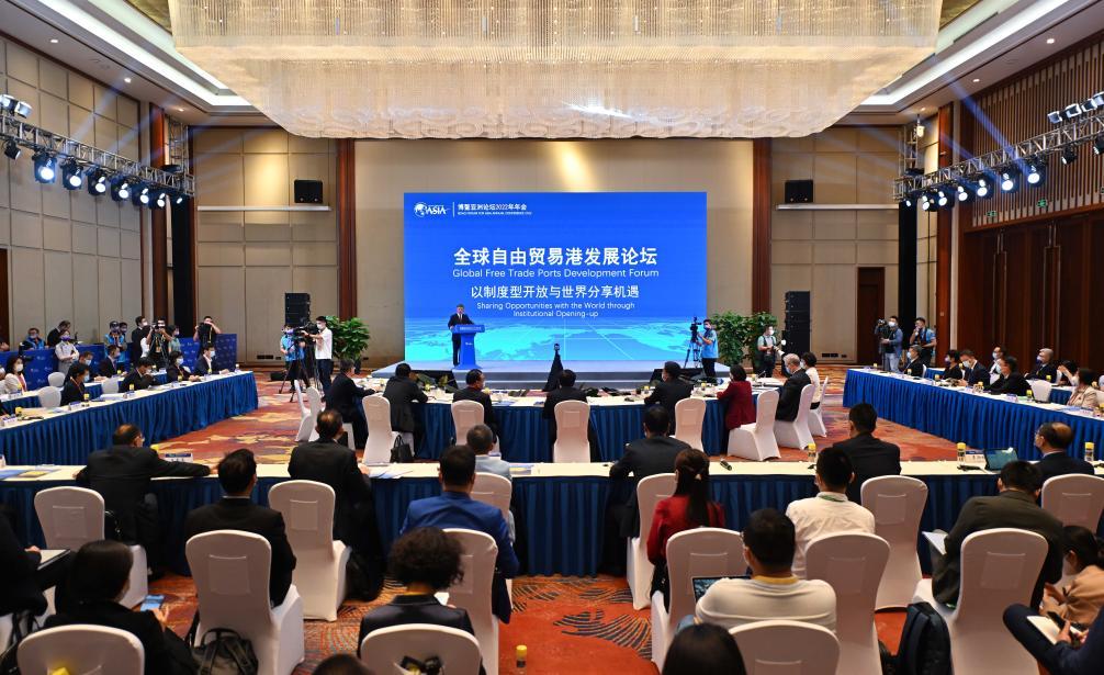 2022年4月21日,博鰲亞洲論壇2022年年會舉行“全球自由貿(mào)易港發(fā)展論壇”。與會嘉賓就如何提升自由區(qū)(港)的國際競爭力等話題展開交流。新華社記者 郭程 攝