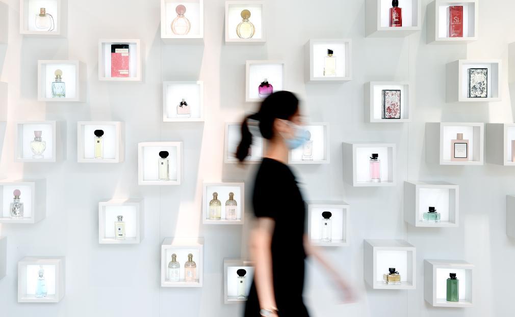 2021年4月19日,消費者從海南博鰲免稅店的香水柜臺前經(jīng)過。新華社記者 郭程 攝