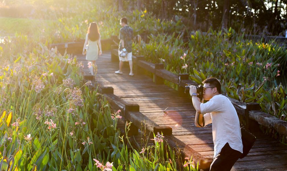 2022年10月2日,游客在博鰲鎮(zhèn)留客村游覽拍照。新華社記者 楊冠宇 攝