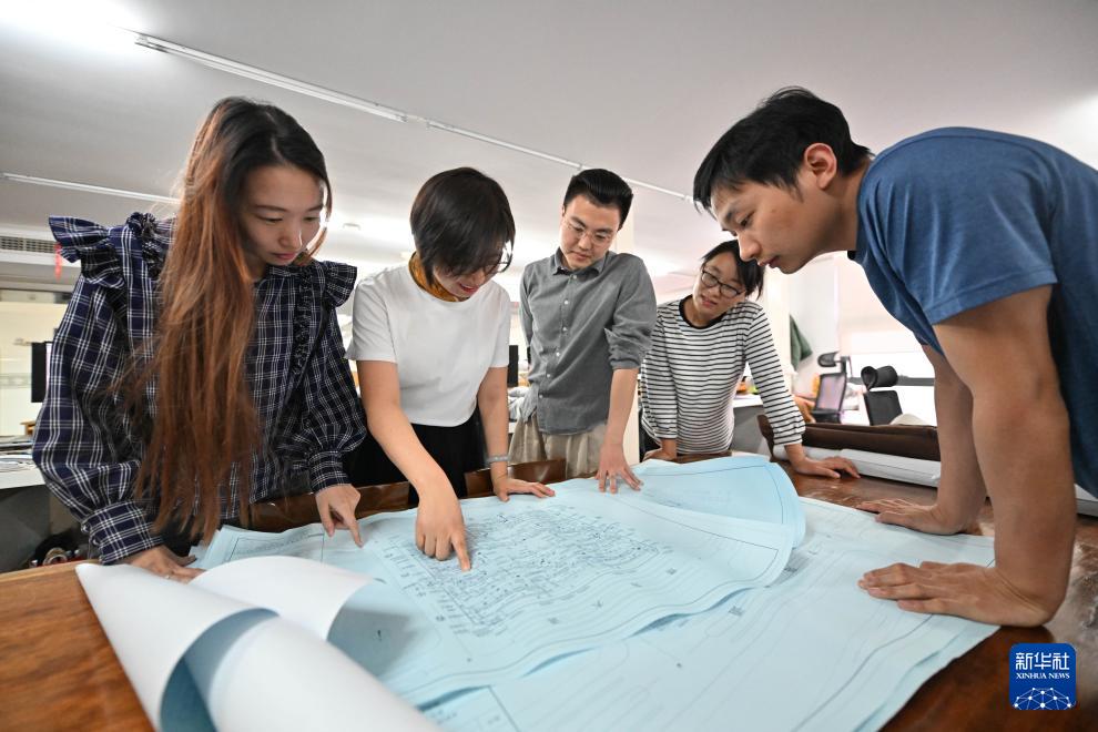 在天津陳塘科技商務(wù)區(qū)天津方標(biāo)世紀(jì)規(guī)劃建筑設(shè)計有限公司,設(shè)計人員在繪圖討論(3月26日攝)。