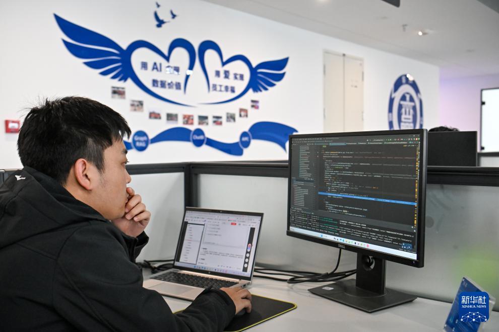 在天津陳塘科技商務(wù)區(qū)天津匯智星源科技有限公司,工程師基于Deepseek大模型訓(xùn)練ChatBI智能對(duì)話系統(tǒng)(3月26日攝)。