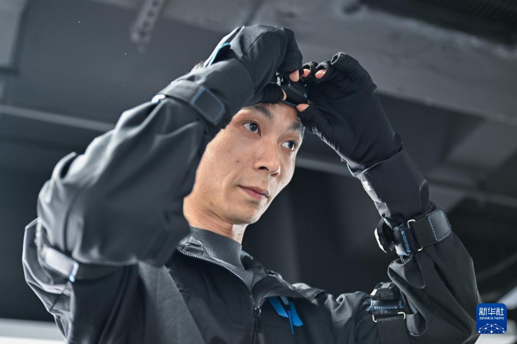??3月24日,工程師付龍在穿戴傳感器設備。