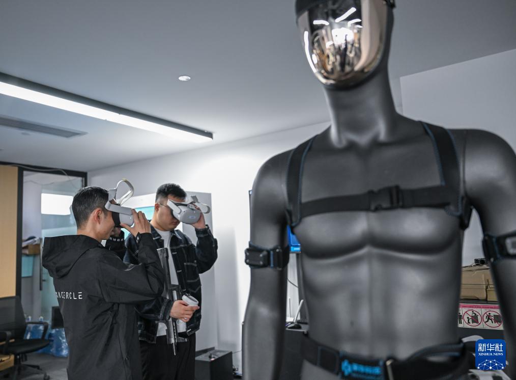 ??在武漢灝存科技有限公司內,一場機械臂與真人的“共舞”正在上演:工程師付龍穿上傳感器設備,動一動身體,屏幕中的虛擬人物便同步完成動作;穿上動態(tài)捕捉裝備,搭載“運動神經(jīng)中樞”的機械臂也能像人的手臂一樣抬舉抓握,甚至能精準捕捉穿戴者指尖的細微震顫。這些正是灝存科技的核心技術——穿戴型肢體動作識別與動態(tài)捕捉系統(tǒng)的直觀展現(xiàn)。
