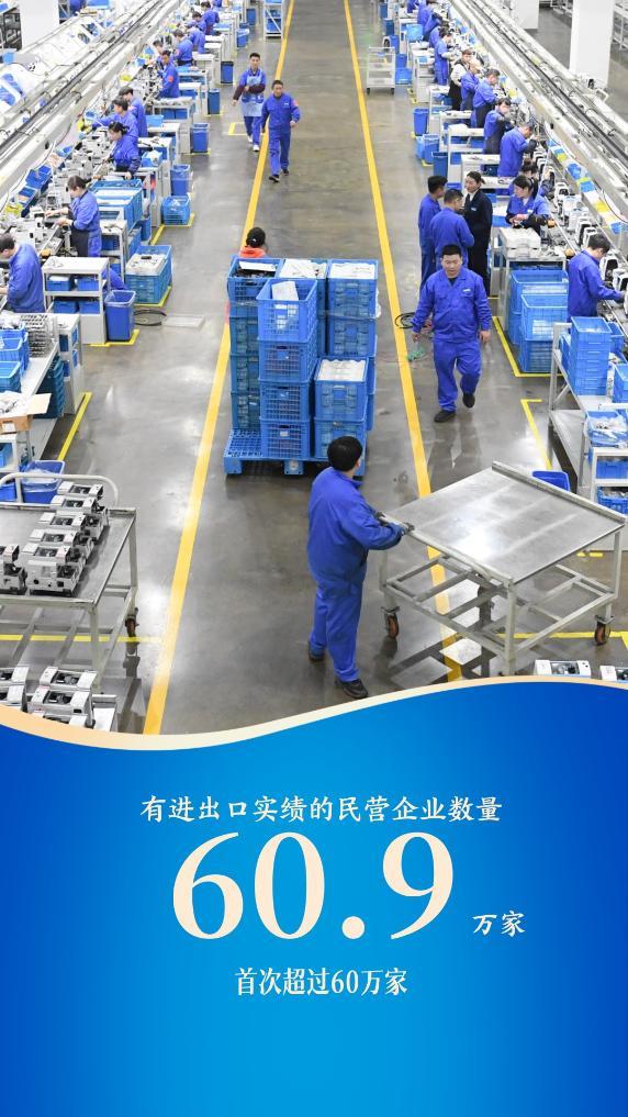 有進(jìn)出口實(shí)績(jī)的民營(yíng)企業(yè)數(shù)量首次超過(guò)60萬(wàn)家,達(dá)到60.9萬(wàn)家,持續(xù)為外貿(mào)發(fā)展注入新生力量。