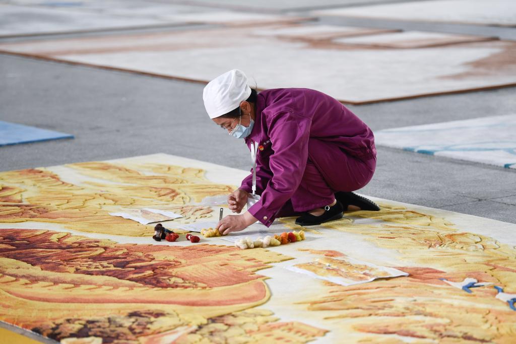 2019年,經(jīng)人介紹,張淑菊到圣源地毯工作。剛來(lái)的時(shí)候,她心里沒(méi)底:“以前干的凈是些粗活,咋練這‘繡花’功夫?”但經(jīng)過(guò)公司的技能培訓(xùn),她很快熟悉了這項(xiàng)工作,一干就是6年多。如今,她每月工資有5000多元?!百I(mǎi)房了,女兒也上大學(xué)了?!睆埵缇照f(shuō),這些都是來(lái)這里工作后的變化,“等交房了,我要在客廳擺一張自己制作的藏毯”。