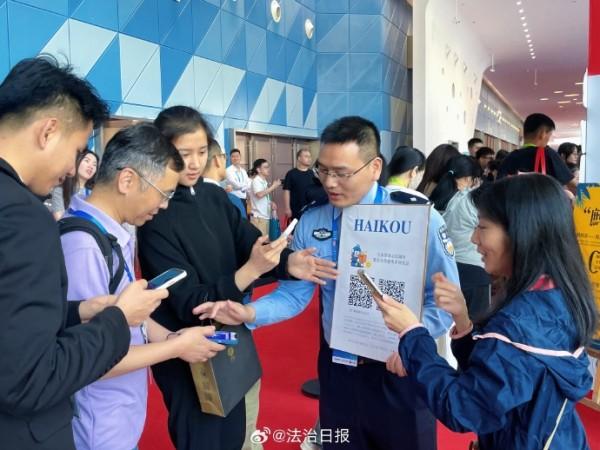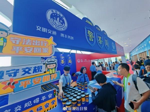 在第五屆中國(guó)國(guó)際消費(fèi)品博覽會(huì)上,海南??诰降摹熬琛帧惫嫘麄髡箙^(qū)格外引人注目。在現(xiàn)場(chǎng),只要參與交通安全知識(shí)問(wèn)答、禁毒知識(shí)問(wèn)答等普法活動(dòng),就可品嘗到印有文明交通標(biāo)語(yǔ)的免費(fèi)茶飲,收獲交警小熊、??诮竟械榷Y品,不少?lài)?guó)內(nèi)外參展客商、市民游客融入其中,現(xiàn)場(chǎng)氛圍十分活躍。除此之外,現(xiàn)場(chǎng)還可觀摩仿真毒品模型、與民警面對(duì)面交流,深入了解法律知識(shí),提高安全防范意識(shí)。創(chuàng)新宣傳,寓教于樂(lè),這場(chǎng)盛會(huì)也因警方這樣的貼心守護(hù)更顯生動(dòng)。