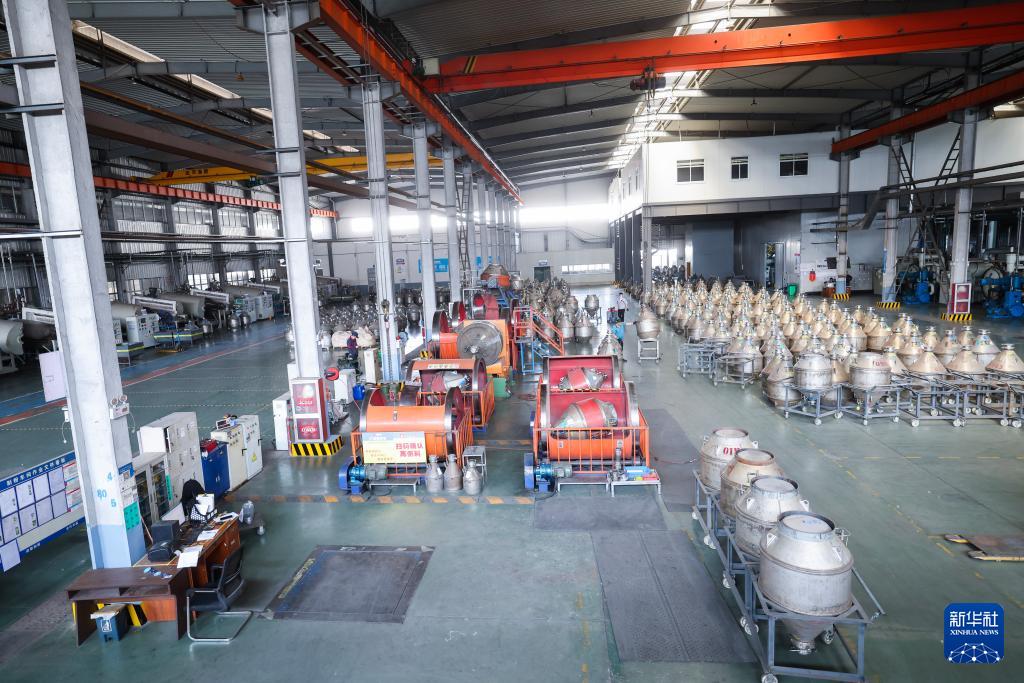 4月9日,在位于慈溪的國家專精特新“小巨人”企業(yè)寧波金輪磁材技術有限公司數(shù)字化車間內(nèi),工人在生產(chǎn)線上生產(chǎn)永磁材料。