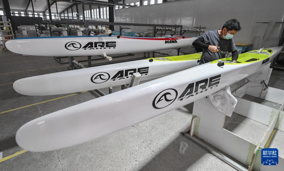 4月24日,在速力復(fù)合材料有限公司的生產(chǎn)車間內(nèi),工人在裝配海洋船。2024年,速力復(fù)材成為巴黎奧運(yùn)會新增的風(fēng)帆水翼賽事唯一指定生產(chǎn)商。