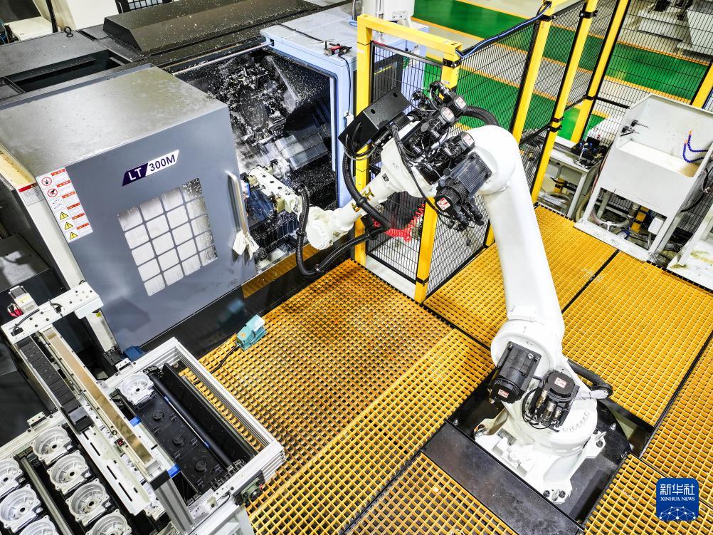這是5月9日在位于北碚區(qū)的重慶順多利機(jī)車有限責(zé)任公司精工基地拍攝的自動(dòng)化生產(chǎn)作業(yè)現(xiàn)場(chǎng)(無(wú)人機(jī)照片)。