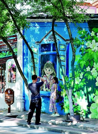 游客在新疆伊犁伊寧市六星街拍照打卡。光明日報記者 閆匯芳攝