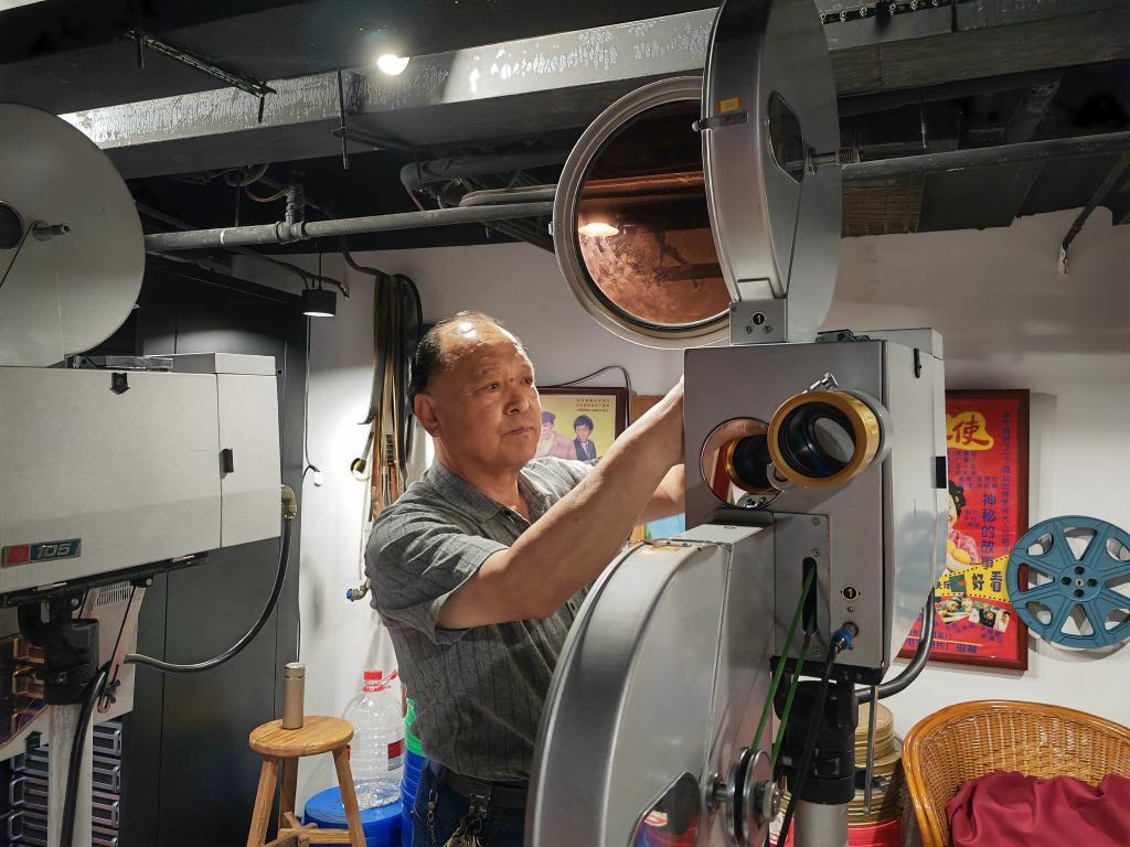 在光影瑯琊·中國百年電影文化體驗(yàn)館,館長鞏西吉正在調(diào)試?yán)鲜诫娪胺庞硻C(jī)。新華社記者劉錚 攝