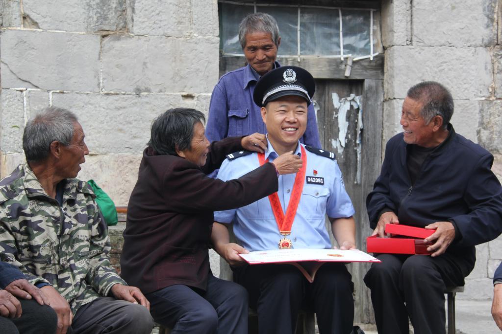 榮獲全國(guó)“人民滿意的公務(wù)員”后,申飛飛與鵝屋村老百姓分享喜悅。(受訪者供圖)