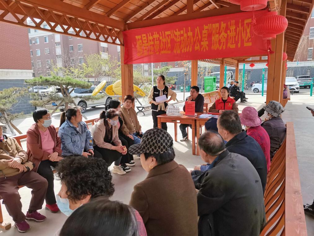 在烏海市維邦佳園小區(qū),社區(qū)、住建局、自來水公司等部門的工作人員一同通過“流動辦公桌”為居民答疑解惑。(受訪者供圖)