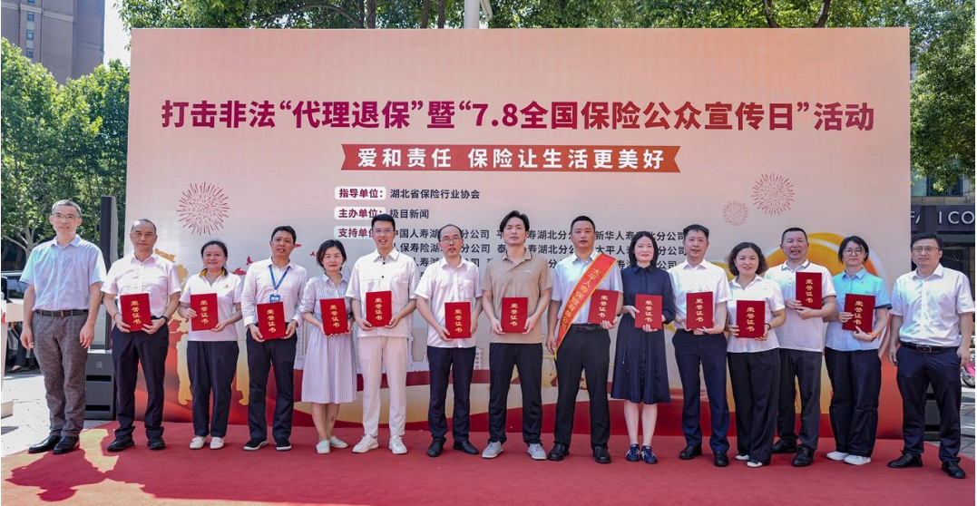 活動(dòng)現(xiàn)場,大家人壽湖北分公司代表與12家金融機(jī)構(gòu)代表聯(lián)合發(fā)起倡議,鄭重宣讀《打擊非法代理退保承諾書》,展現(xiàn)行業(yè)堅(jiān)決打擊非法“代理退?!焙诨耶a(chǎn)的決心。國家金融監(jiān)督管理總局湖北監(jiān)管局、湖北省保險(xiǎn)行業(yè)協(xié)會(huì)和極目新聞相關(guān)領(lǐng)導(dǎo)共同為現(xiàn)場保險(xiǎn)公司頒發(fā)“打擊非法‘代理退?!蠕h單位”榮譽(yù)證書,倡議行業(yè)助力保險(xiǎn)消費(fèi)者守護(hù)好“錢袋子”。