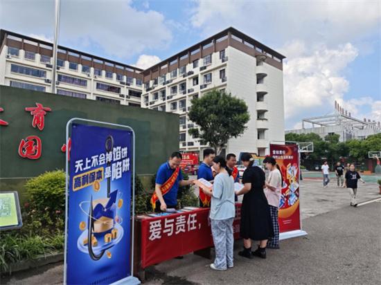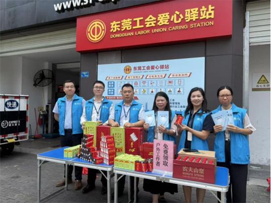 在東莞市匯峰中心,前海人壽東莞分公司的志愿者搭建起服務(wù)站點(diǎn),為環(huán)衛(wèi)工人、快遞員、外賣員等戶外工作者送上清涼飲品,同時(shí)結(jié)合宣傳材料講解電信詐騙手法和防范要點(diǎn),在送上夏日關(guān)懷的同時(shí)有效提升群眾金融風(fēng)險(xiǎn)防范意識(shí)。