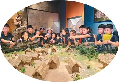 “古蜀尋春季”研學(xué)活動現(xiàn)場,孩子們參觀寶墩遺址博物館。 成都市新津區(qū)文廣體旅局供圖