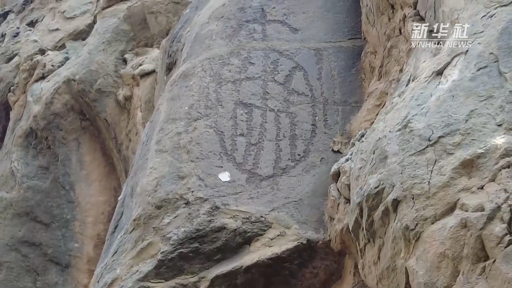 在石壁上的一幅人面像上,存在橫豎相交的線條。賀蘭山巖畫管理處黨組成員、副主任張建國介紹,古代人為了表達(dá)對自己失去親人的悲哀,會在臉上用石頭畫成這種橫豎相交的線條,表示鮮血噴涌而出,以“黥面”來表達(dá)對親人的紀(jì)念和懷念。