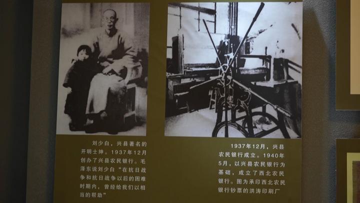 講解員張英告訴記者,為了更貼近百姓,與閻錫山的晉鈔區(qū)分開來,所以取名叫興縣農民銀行?!霸冢ㄅd縣)農民銀行的基礎上,我們又成立了西北農民銀行。西北農民銀行當時的主要工作就是印鈔。我們看到的這個就是當時建立的洪濤印刷廠,當時洪濤印刷廠的工作也非常多,從1940年成立到1949年1月,一共印的鈔票價值是3.8億元。1940年5月10日,我們在興縣孫家大院舉辦了開業(yè)大禮,從此西北農民銀行誕生,之后在1948年12月份,西北農民銀行、華北銀行、北海銀行合并,組建了中國人民銀行,至此,西北農民銀行完成了它的歷史使命?!彼f。
