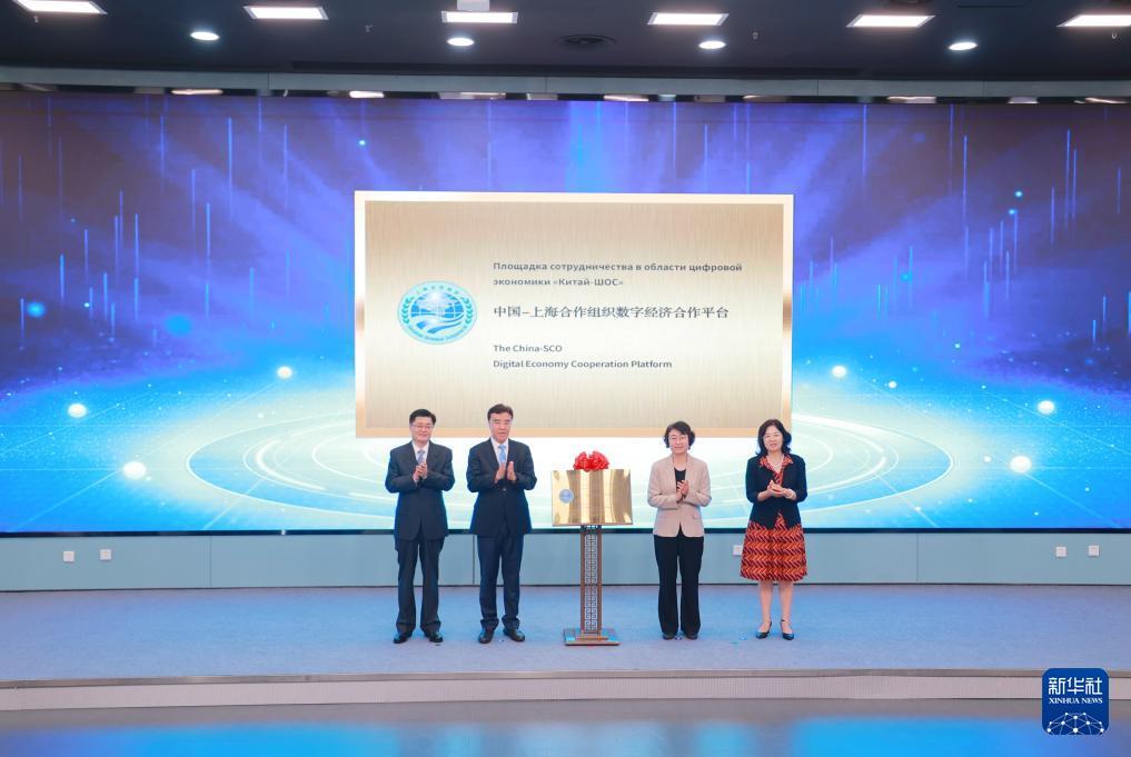 9月2日拍攝的中國(guó)—上海合作組織數(shù)字經(jīng)濟(jì)合作平臺(tái)揭牌儀式現(xiàn)場(chǎng)。新華社發(fā)