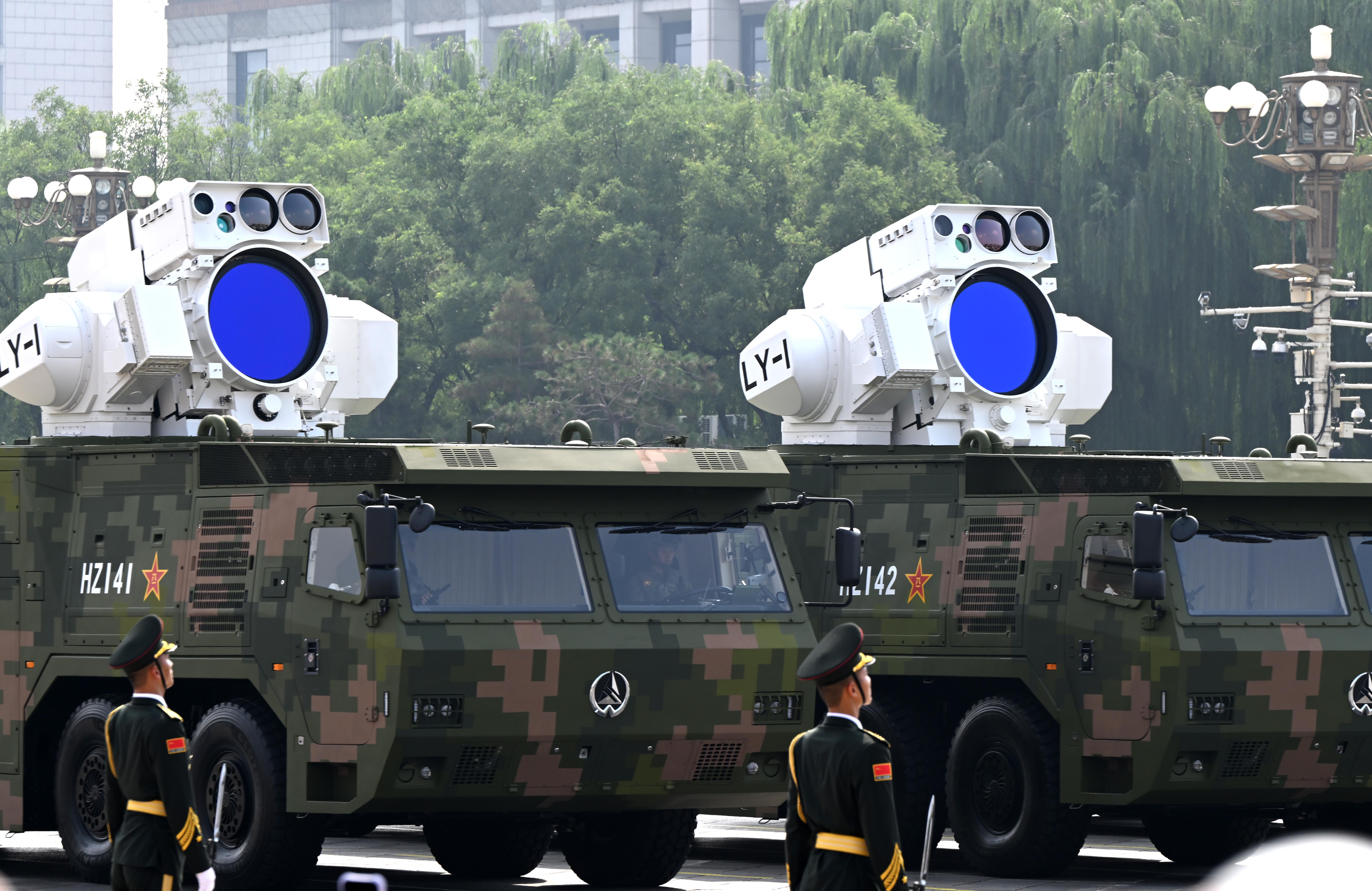 最后一個(gè)出場(chǎng)的是低空戰(zhàn)場(chǎng)、密織火網(wǎng)的反無人機(jī)方隊(duì)。受閱的反無彈炮系統(tǒng)、高能激光武器、高功率微波武器等成體系建設(shè),既能軟殺傷,又能硬摧毀,是反制無人機(jī)的“鐵三角”。