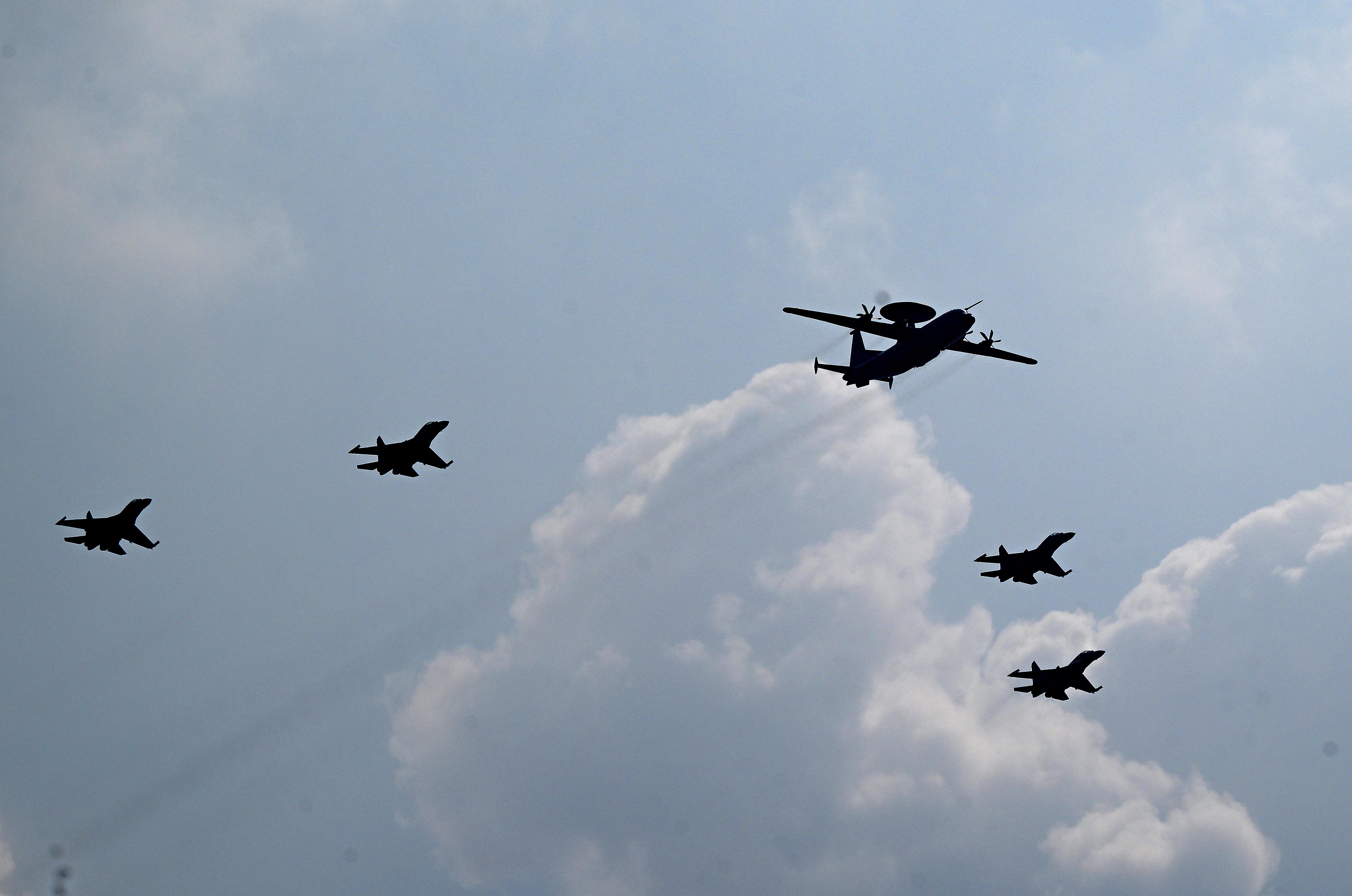 預(yù)警指揮機(jī)梯隊(duì)接受檢閱。 本報(bào)記者 楊晉峰 攝