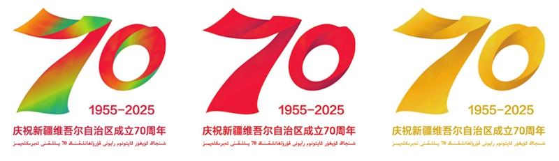 新疆維吾爾自治區(qū)成立70周年慶?;顒訕?biāo)識主體為律動扭轉(zhuǎn)的數(shù)字“70”,取絲路沙漠綠洲之綠、石榴花之紅與胡楊林之黃為主色,展現(xiàn)出新疆維吾爾自治區(qū)的錦繡山川,紅黃綠色漸變交織出璀璨的文化脈絡(luò),象征70年來新疆各族人民在中國共產(chǎn)黨的領(lǐng)導(dǎo)下,在偉大祖國的懷抱中,同心協(xié)力、砥礪奮進,在中國式現(xiàn)代化進程中更好建設(shè)美麗新疆的蓬勃朝氣?!?955—2025”代表新疆維吾爾自治區(qū)成立70周年。標(biāo)識凸顯中華民族精神,反映新疆歷史底蘊,營造出喜慶、熱烈、祥和的氛圍。同時附兩款單色標(biāo)識。