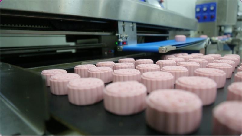 在湖口縣月餅生產(chǎn)車間,工人們正在加緊趕制訂單,從面料準備、餡料調(diào)配到機械切割、排盤烘烤,全部流程高效有序。