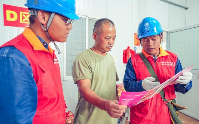濉溪縣供電公司黨員服務(wù)隊(duì)向店主宣傳用電安全。儲運(yùn)濤攝