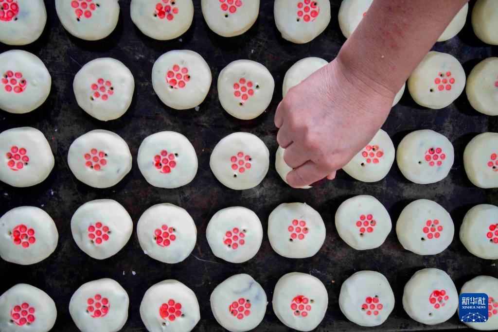 9月23日,在河北遵化市西三里鎮(zhèn)一家糕點加工企業(yè),工人在車間制作傳統(tǒng)月餅。