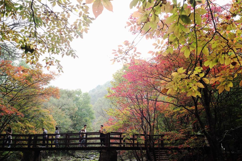 10月1日,游客在遼寧本溪老邊溝風景區(qū)內(nèi)游玩。新華社記者 李鋼 攝
