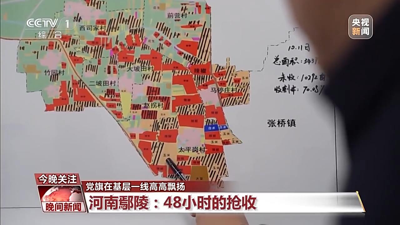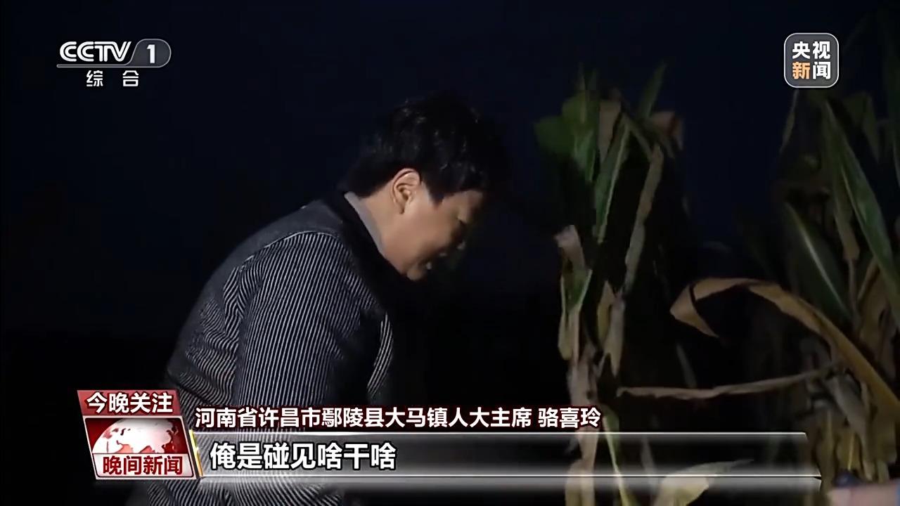河南省許昌市鄢陵縣太平崗村村民 王進(jìn)中:黨員干部這么多人,黑了拿著礦燈,都沒停事,吃飯都沒吃飯,收莊稼、收玉米。