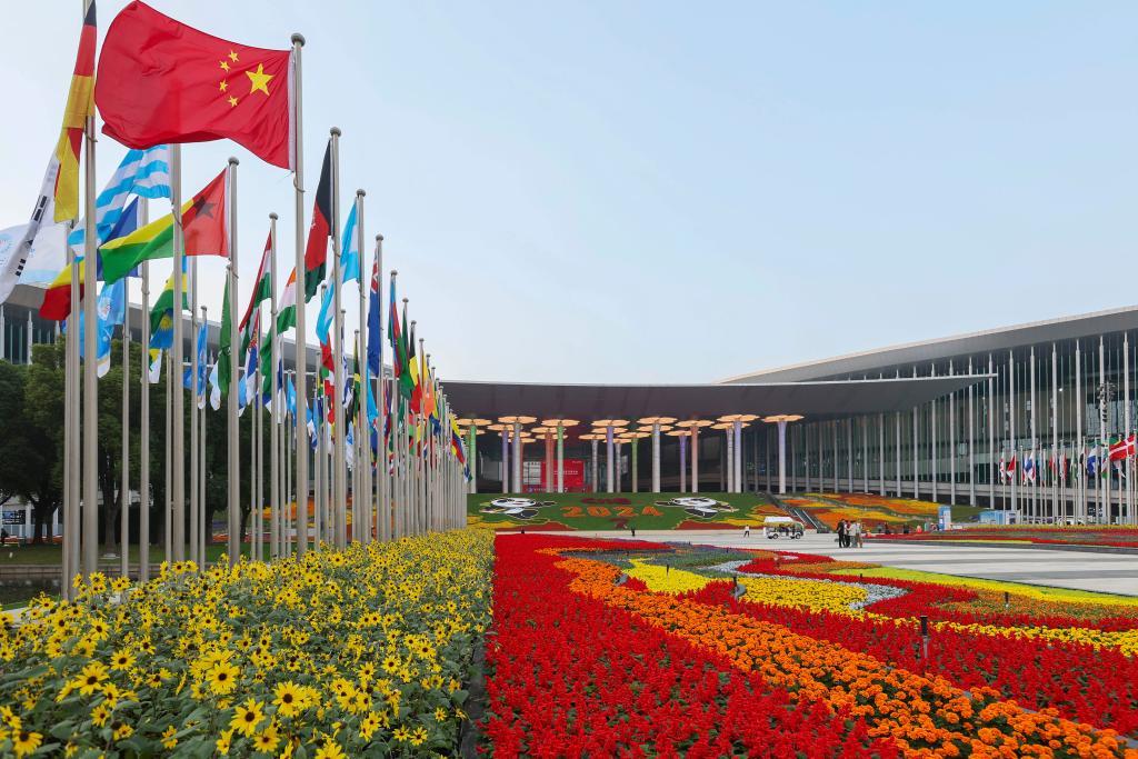 這是2024年11月4日拍攝的第七屆中國(guó)國(guó)際進(jìn)口博覽會(huì)舉辦場(chǎng)地——國(guó)家會(huì)展中心(上海)外景。新華社記者王翔攝